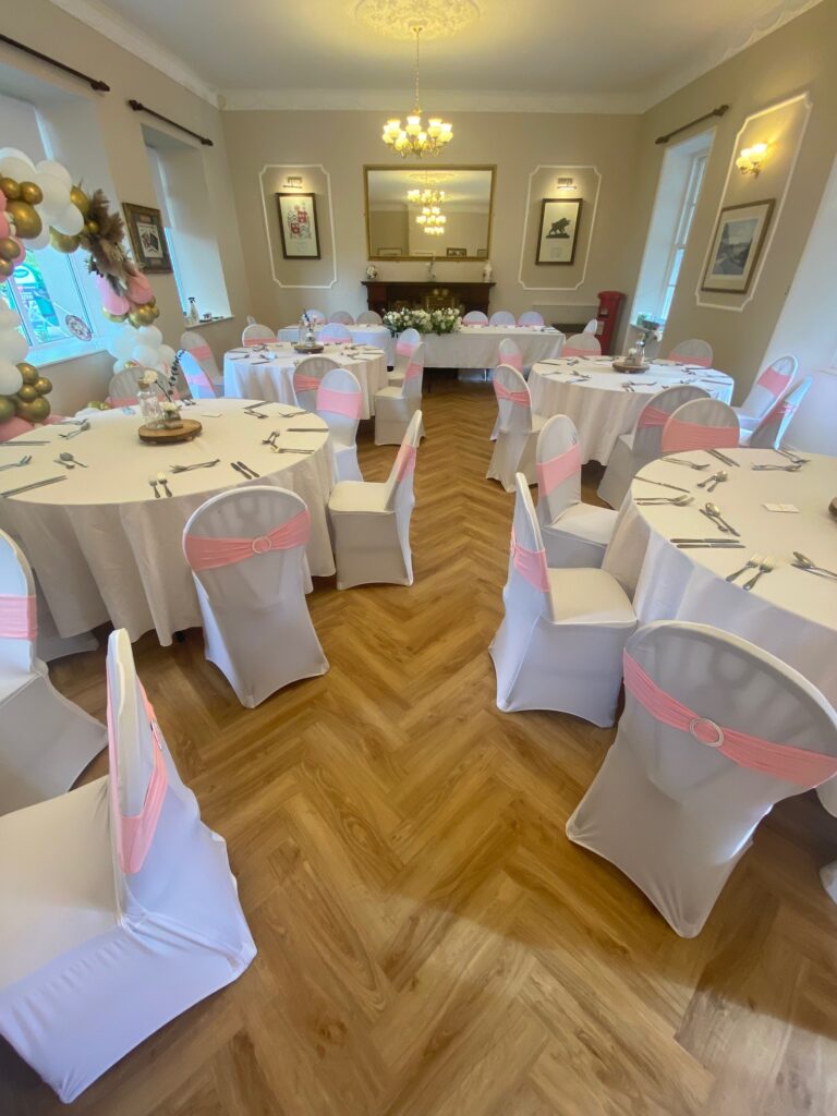 The refurbishment transformed the century-old dining space from a dark, dated room into a bright, modern function area that the golf club can now promote with confidence. The installation was completed on schedule, ready for the wedding celebration that had been booked.